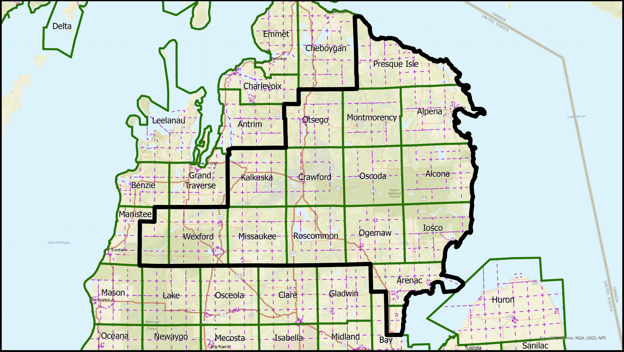 Michigan’s 36th Senate District includes Alpena, Alcona, Arenac, Crawford, Iosco, Kalkaska, Missaukee, Montmorency, Ogemaw, Oscoda, Otsego, Presque Isle, Roscommon and Wexford counties, along with portions of Bay and Manistee counties.